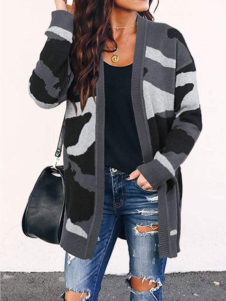 Camouflage Mid-length Knitted Cardigan