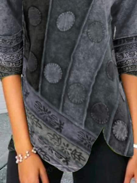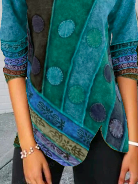 Abstract Long Sleeve Vintage Shift Shirts & Tops