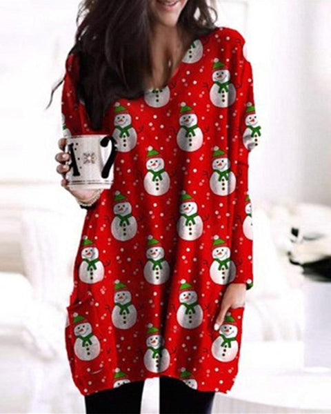 Autumn and winter new Christmas hedging long sleeve printed dress