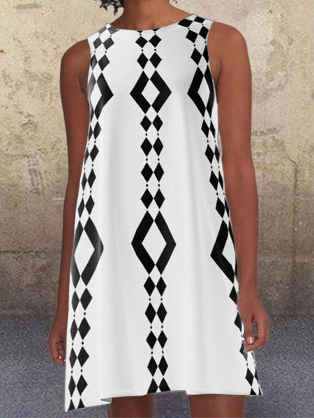 Black 1960's Geometric Pattern Pockets A-Line Retro Printed Casual Dresses