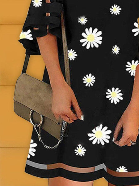 Black A-Line Floral Printed Casual Holiday Dresses