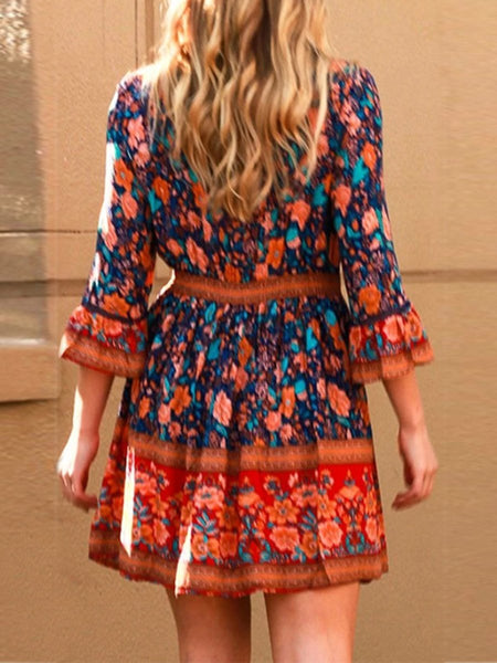 Bohemian Style V-Neck 3/4 Sleeves Floral Dresses