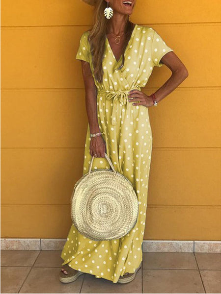 Bohemia V-Neck Polka Dot Elastic Waist Maxi Dress